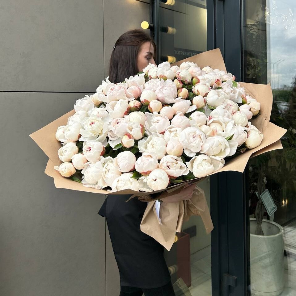 Пионы – весенняя роскошь. Монобукет из пионов в сезон (май–июнь) – один из самых востребованных вариантов в цветочном магазине. Пышные, ароматные, нежные, они создают объёмные, воздушные композиции даже в небольшом количестве бутонов. Их пышная форма работает на моно без каких-либо дополнений.
