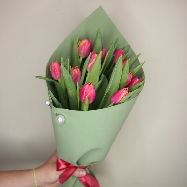 Букет из 11 розовых пионовидных тюльпанов