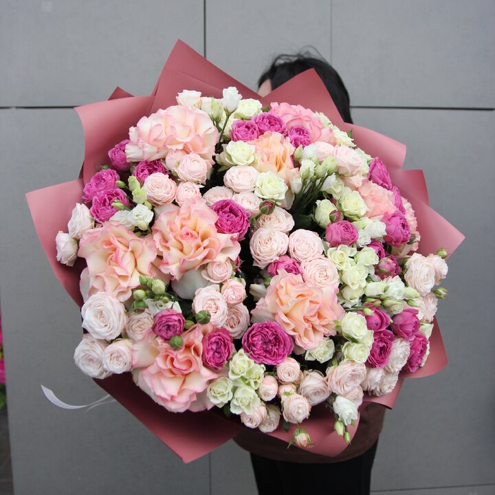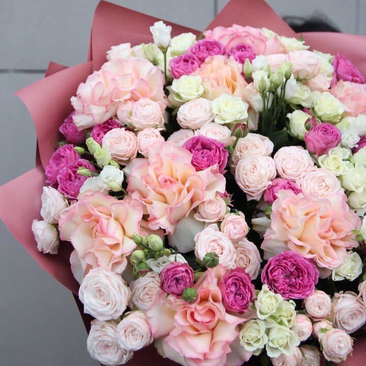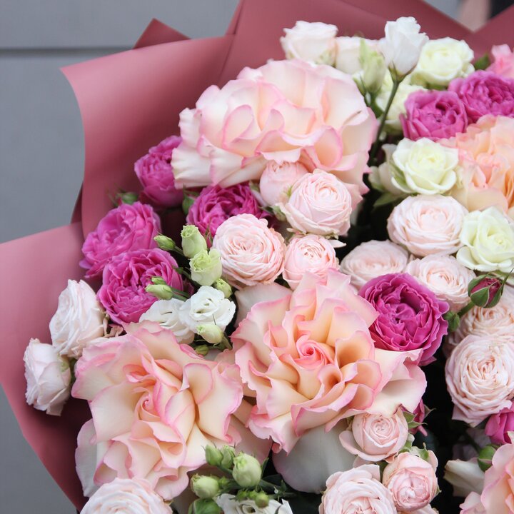 Состав букета: Французская роза, Кустовая роза, Пионовидная роза