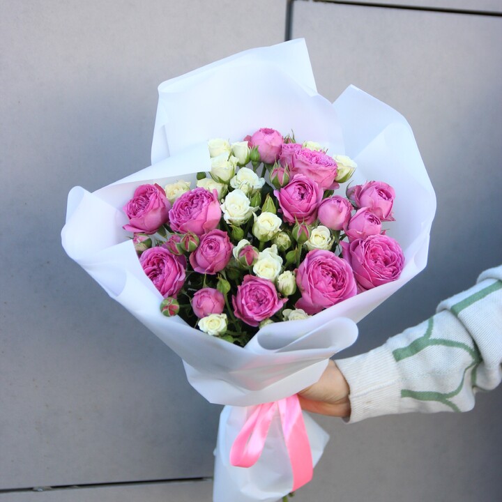 Флорист соберет вам букет из подходящей гаммы, максимально соответствующей букету на фотографии
