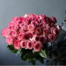 Букет «Розовое сияние» Этот букет — словно всплеск нежности, застывший в лепестках роз. Композиция завораживает с первого взгляда: пышные бутоны, окрашенные в оттенки розового, перетекают друг в друга, создавая игру полутонов — от едва заметного румяного до насыщенного малинового. Розы собраны в плотную, округлую форму, которая напоминает рассветное солнце, только что поднявшееся над горизонтом. Высота букета — около 50 см, а диаметр впечатляет — 30–35 см. Такая масштабность делает композицию одновременно элегантной и торжественной. Главная звезда букета — эквадорские розы, отличающиеся особой пышностью и бархатистостью лепестков. Их изящные формы дополнены сочной зелёной листвой, которая придаёт букету свежесть и естественность, словно он только что был собран в саду. Лепестки будто переливаются на свету, создавая ощущение лёгкого движения — так цветы рассказывают свою историю без слов. Упаковка минималистична, но изысканна: прозрачная плёнка деликатно обрамляет композицию, позволяя полностью оценить её красоту. Такой подход подчёркивает природную элегантность роз, не отвлекая внимание лишними деталями. Букет производит впечатление грандиозного, но не вычурного жеста. Он одновременно торжественный и тёплый, словно воплощает в себе искренность чувств. «Розовое сияние» подойдёт для особых моментов: чтобы отметить юбилей, выразить глубокие чувства на свидании, поздравить с карьерным достижением или просто подарить улыбку близкому человеку. Эта композиция станет центром внимания на любом мероприятии — от семейного праздника до делового события. Она говорит больше любых слов, наполняя пространство атмосферой радости и гармонии.