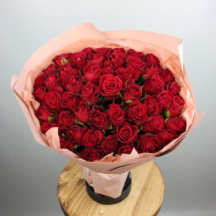 Букет из 49 красных кенийских роз в упаковке (#38)