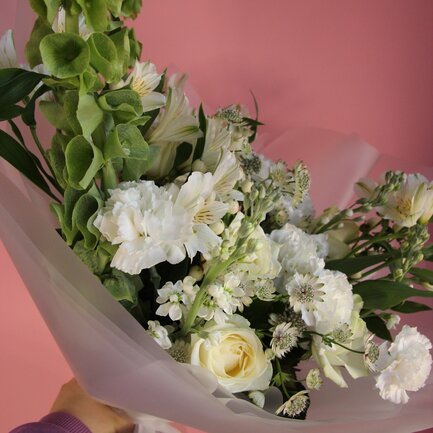 «Шёпот утра» производит впечатление изысканной сдержанности и чистой красоты. Он словно рассказывает тихую историю о спокойствии и светлых чувствах. Такой букет подойдёт для самых значимых моментов: чтобы поздравить коллегу с профессиональным праздником, выразить благодарность учителю, украсить торжественную церемонию или просто подарить близкому человеку в знак тёплых чувств. Его утончённость делает композицию уместной даже для свадебного декора или траурной церемонии, где важна деликатность и уважение.