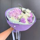 Букет «Лавандовая мечта» Этот букет — словно кусочек весеннего утра, бережно уложенный в нежные объятия лавандовой упаковки. Композиция собрана в округлой, слегка небрежной форме, которая придаёт ей естественность и лёгкую игривость. Объём средний — достаточно пышный, чтобы впечатлить, но не громоздкий, идеально ложится в руки. В сердце букета — пышные соцветия гортензии нежно-розового оттенка. Они создают основу композиции, будто облака, окутывающие остальные цветы. К ним деликатно примыкают кустовые хризантемы кремового цвета — их аккуратные лепестки добавляют букету утончённости и лёгкости. Фиолетовые гвоздики вносят яркий акцент, словно маленькие вспышки вдохновения, а веточки лаванды придают композиции воздушность и лёгкий аромат полевых цветов. Упаковка выполнена в нежном лавандовом оттенке, который гармонично сочетается с цветовой гаммой букета. Внутренняя обёртка из полупрозрачной бумаги подчёркивает свежесть цветов, а декоративная лента завершает образ, придавая букету изысканность. «Лавандовая мечта» производит впечатление лёгкости и романтичности. Он не просто радует глаз — он рассказывает историю, наполненную спокойствием и теплом. Этот букет будто шепчет о безмятежных днях, наполненных солнцем и ароматом цветов. Композиция подойдёт для самых разных ситуаций: чтобы порадовать подругу в день рождения, выразить благодарность коллеге, создать романтическую атмосферу на свидании или просто поднять настроение близкому человеку. Он будет уместен и на семейном празднике, и на творческом мероприятии, и в качестве знака внимания без повода. «Лавандовая мечта» — это способ сказать «я думаю о тебе» с особой теплотой и изяществом. Мы собираем этот букет исключительно из свежих цветов, тщательно подбирая каждый экземпляр. Композиция собирается перед отправкой, чтобы добраться до получателя в идеальном состоянии. Позвольте «Лавандовой мечте» передать ваши самые тёплые чувства!