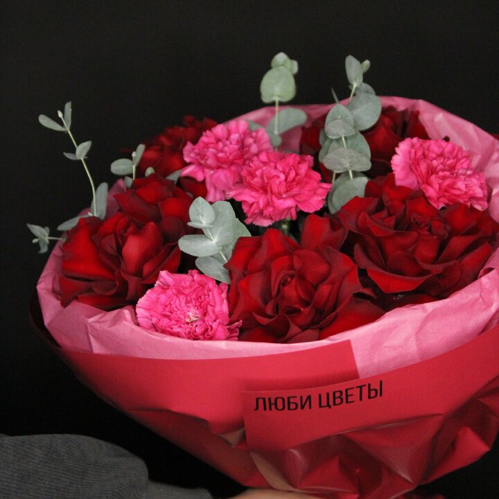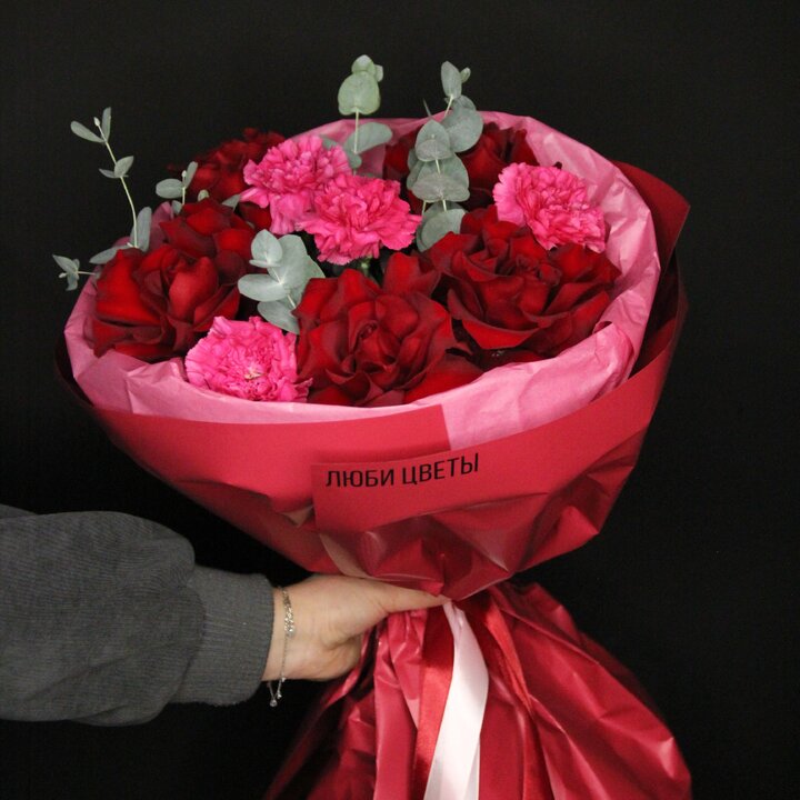 Упаковка: Букет упакован в матовую пленку