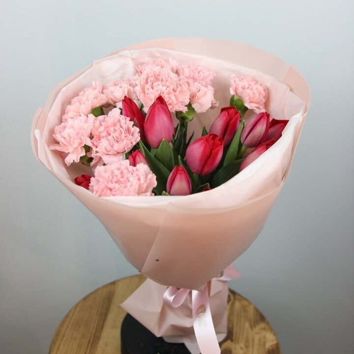 Состав букета: Тюльпан, Гвоздика