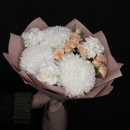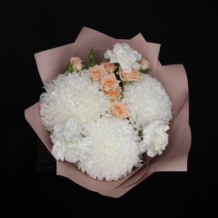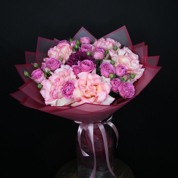 Состав букета: Французская роза, Хризантема, Пионовидная роза