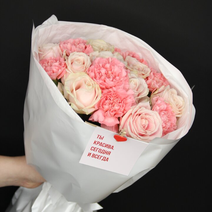 Состав букета: Гвоздика, Роза