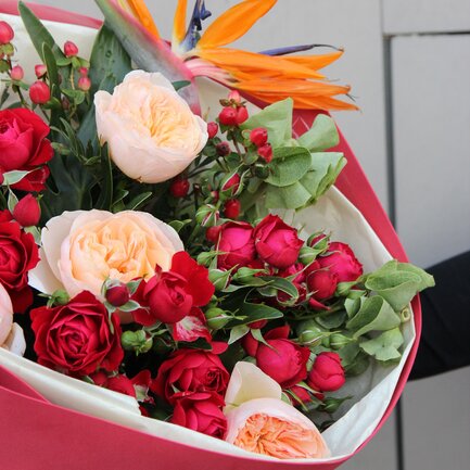 Обращаем внимание, что состав букета может быть незначительно изменен (в связи с сезонностью и конкретной поставкой), при этом стилистика и цветовая гамма останутся неизменными.