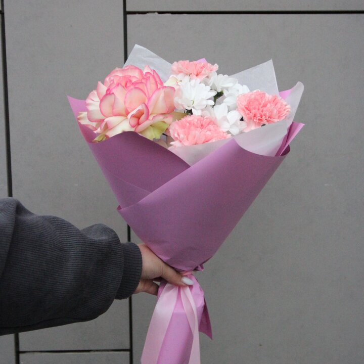 Упаковка: Букет упакован в корейскую матовую плёнку