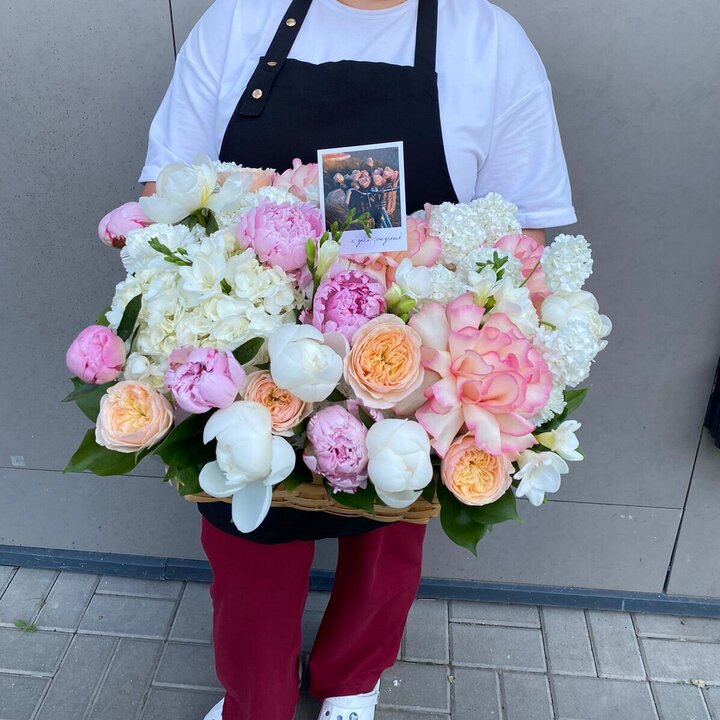 Состав букета: Пион, Гортензия, Вывернутая роза