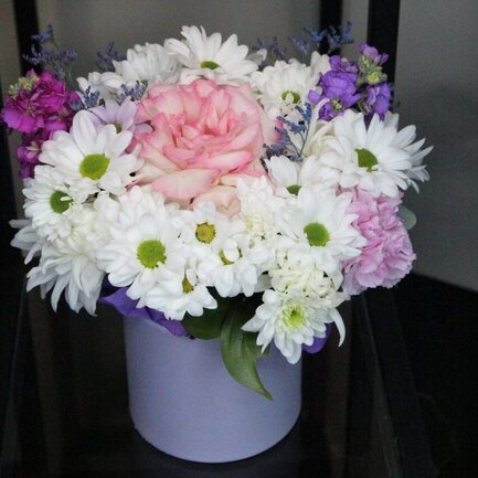 Композиция из кустовых зризантем и розы (ВОХ 101)