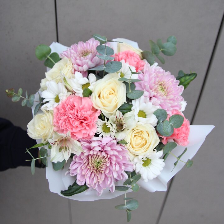Флорист соберет вам букет из подходящей гаммы, максимально соответствующей букету на фотографии