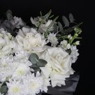 Композиция в белых тонах с гортензией, хризантемами и розами (Вох 82)