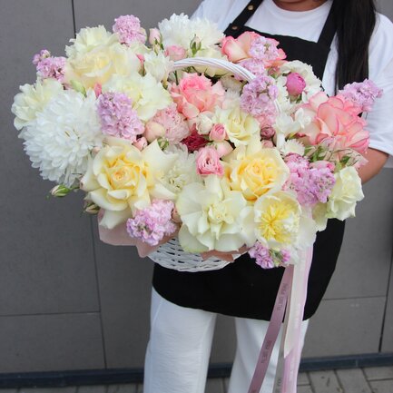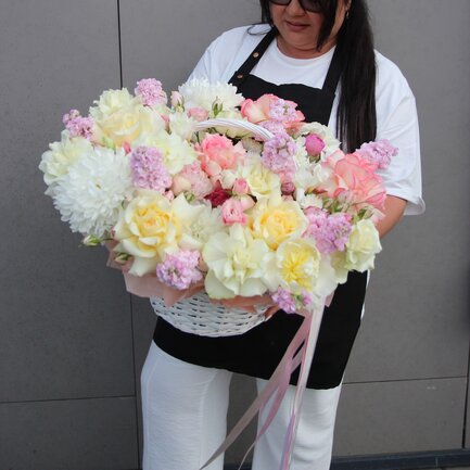 Обращаем внимание, что состав букета может быть незначительно изменен (в связи с сезонностью и конкретной поставкой), при этом стилистика и цветовая гамма останутся неизменными.