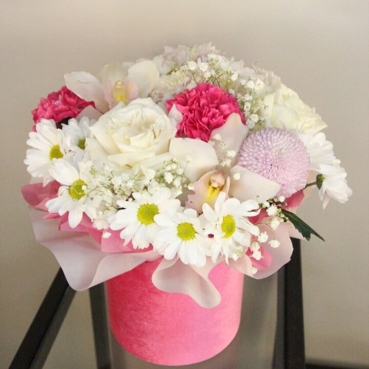 Состав букета: Кустовая хризантема, Цимбидиум, Хризантема, Роза, Гвоздика