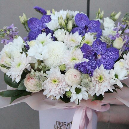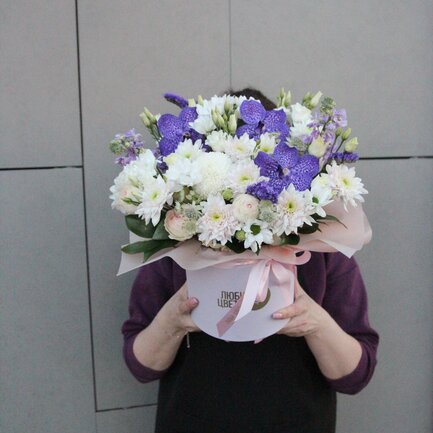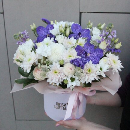 Коробка с цимбидиумом и матиолой (ВОХ 58)