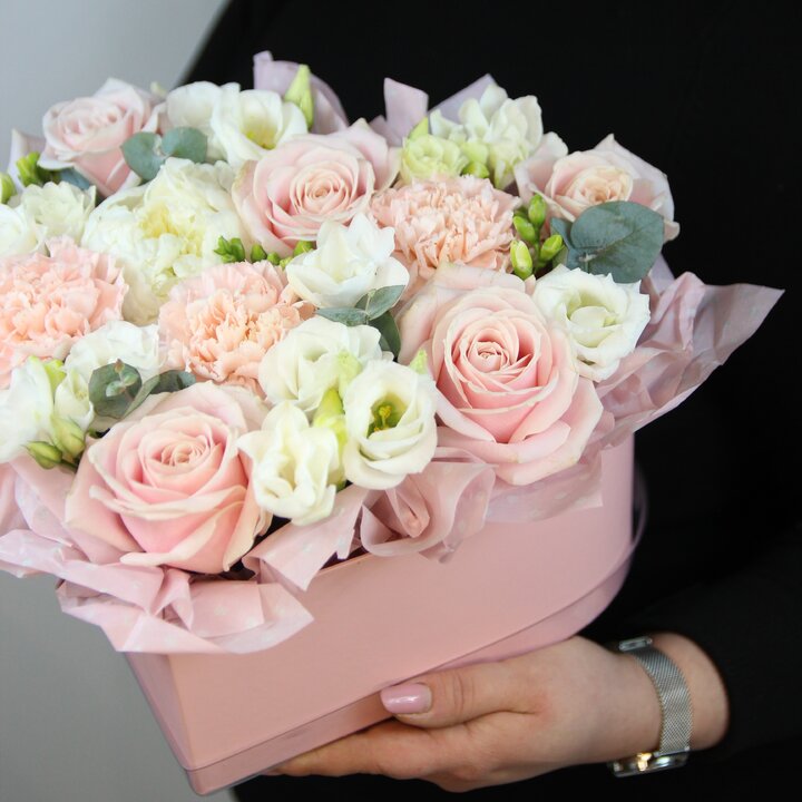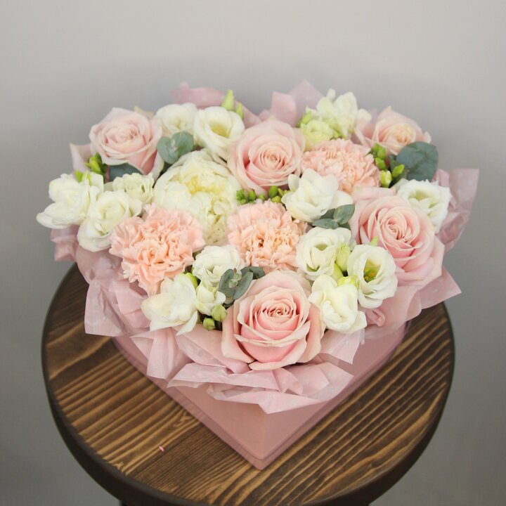Нежная композиция "сердце" в розовых тонах (ВОХ 50)