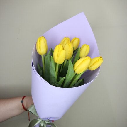 Букет из 9 желтых гладких тюльпанов (Моно 20)