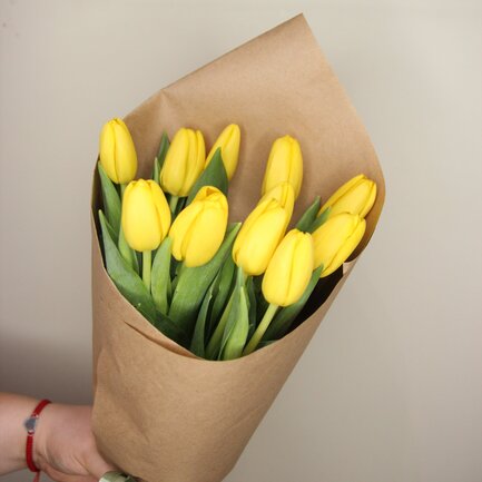 Букет из 11 желтых гладких тюльпанов в крафте (Моно 22)
