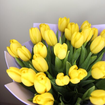 Букет из 25 желтых гладких тюльпанов в фоамиране (Моно 24)