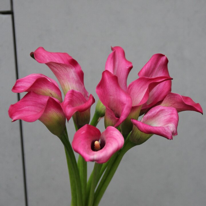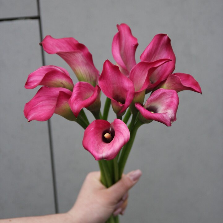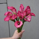Букет из 11 калл: воплощение элегантности без лишних деталей Перед вами — лаконичная, но выразительная композиция из 11 насыщенно-розовых калл. Эти цветы завораживают с первого взгляда: их лепестки, словно вырезанные из атласа, переливаются оттенками от глубокого малинового до нежного розового с лёгкими зелёными переходами у основания. Изогнутые формы калл создают ощущение движения, будто букет «дышит» — настолько живо и естественно он выглядит. Компактная сборка без упаковки подчёркивает природную красоту цветов. Здесь нет ничего лишнего: только безупречные линии, сочная зелень стеблей и роскошное сияние лепестков. Такой формат позволяет в полной мере оценить изящество калл — их строгую, но чувственную эстетику, которая одинаково хорошо подойдёт и для торжественного случая, и для тихого знака внимания. Этот букет производит впечатление сдержанной роскоши. Он не кричит о себе, но неизменно притягивает взгляд. Представьте, как он украсит рабочий стол руководителя, добавит романтики вечернему ужину или станет изюминкой минималистичного интерьера. Кому подойдёт такой букет? влюблённому, желающему выразить глубину чувств без слов; другу или родственнику в день рождения — как символ искренней радости; коллеге или начальнику в качестве уважительного, но не формального подарка; ценителю цветочной эстетики, который оценит чистоту линий и гармонию оттенков. Мы гарантируем свежесть цветов: каждый букет собирается непосредственно перед отправкой. Аккуратная сборка сохраняет естественную динамику композиции, а бережная доставка гарантирует, что получатель восхитится букетом в первые же секунды. Позвольте этим каллам рассказать о ваших чувствах — чисто, искренне и стильно.