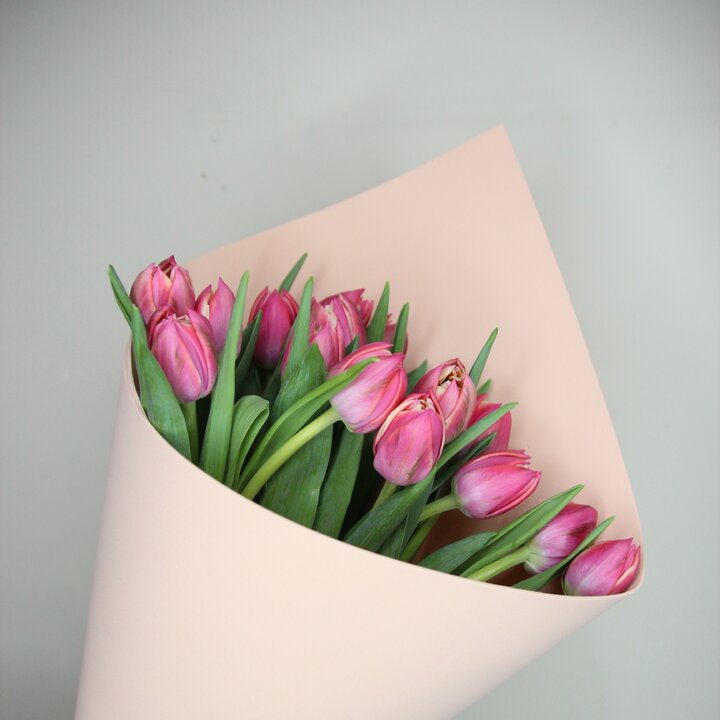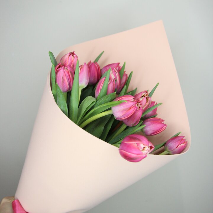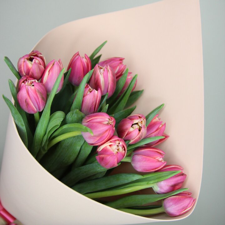 Букет из 15 розовых пионовидных тюльпанов (Моно 28)