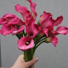 Букет «Розовые каллы: всплеск страсти» Этот букет — воплощение утончённой элегантности и чувственности. В нём нет излишней вычурности, только безупречная гармония линий и оттенков. Компактная, но пышная композиция состоит из 19 розовых калл, которые завораживают с первого взгляда. Их лепестки, словно вырезанные из атласа, переливаются нежными оттенками розового — от насыщенного малинового у основания до почти прозрачного по краям. Лёгкий градиент придаёт цветам живость и глубину, а изящные изгибы лепестков создают ощущение движения, будто букет дышит. Каллы — звёзды этой композиции. Их строгие, но в то же время плавные формы сочетаются с сочной зеленью стеблей, которая добавляет букету свежести и контраста. Объём букета умеренный: 19 цветов собраны так, чтобы композиция выглядела выразительно, но не громоздко. Отсутствие упаковки подчёркивает природную красоту калл, позволяя в полной мере оценить их изящество и чистоту линий. Аккуратная сборка — заслуга наших флористов: каждый цветок занимает своё место, создавая сбалансированную картину. Такой букет подойдёт для самых разных поводов. Он станет изысканным подарком на день рождения, особенно если адресат ценит лаконичность и стиль. Романтический жест? Безусловно! Розовые каллы передают трепетные чувства, не прибегая к банальным символам. Хотите выразить благодарность или признательность? Этот букет скажет больше любых слов. А ещё он отлично подойдёт в качестве знака внимания, который подчеркнёт ваш безупречный вкус. Мы гарантируем свежесть цветов: каждый букет собирается непосредственно перед отправкой. Наши флористы уделяют внимание каждой детали — от выбора самых свежих калл до идеальной композиции. Доставка сохранит первозданный вид букета, и получатель сможет в полной мере насладиться его красотой. Позвольте этим 19 розовым каллам рассказать о ваших чувствах!