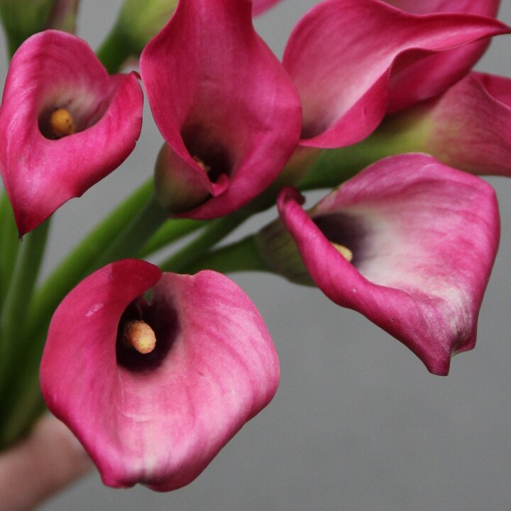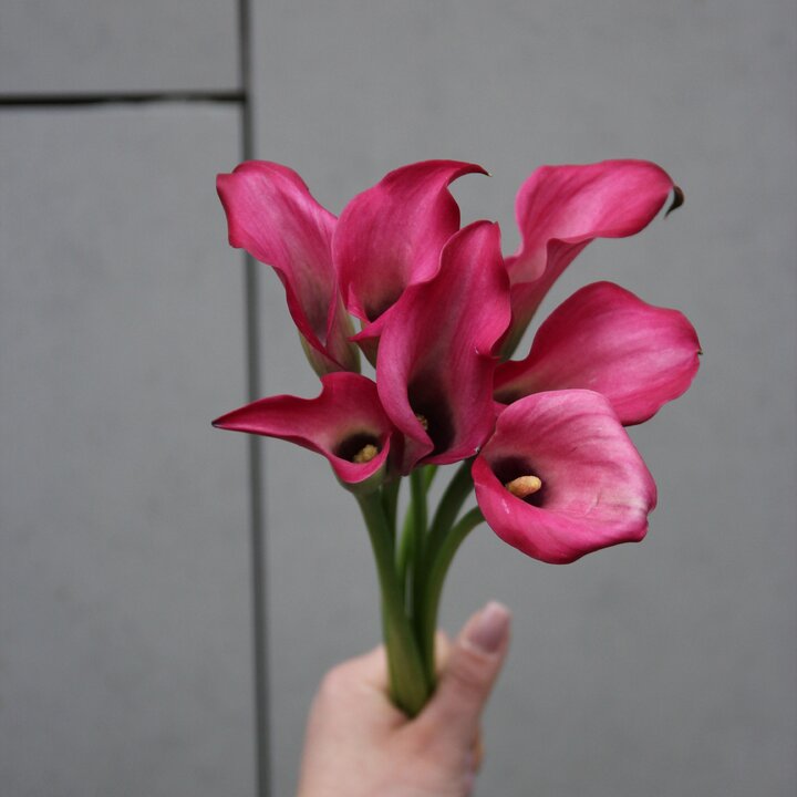 Букет из 7 розовых калл: чистота линий и благородная простота Представьте букет, в котором нет ничего лишнего — только безупречная красота природы. Семь роскошных калл насыщенного розово-малинового оттенка собраны в лаконичную композицию без упаковки. Их глянцевые лепестки, словно вырезанные из атласа, завораживают игрой света и тени. Лёгкие переливы цвета — от глубокого малинового у основания до нежного розового по краям — создают ощущение живой, пульсирующей красоты. Изогнутые формы цветов напоминают танцевальные па: букет выглядит одновременно статично и динамично, будто замер в мгновении перед движением. Зелёные стебли, упругие и свежие, подчёркивают благородство композиции, добавляя ей естественности. Отсутствие упаковки позволяет в полной мере оценить изящество калл — их строгую, но чувственную эстетику. Такой букет производит впечатление сдержанной роскоши. Он не кричит о себе, но неизменно притягивает взгляд. Это выбор тех, кто ценит минимализм и утончённость. Представьте, как он украсит: современный интерьер, добавив ему нотку элегантности; рабочий стол руководителя, подчеркнув уважение и профессионализм; романтичный ужин, создав атмосферу трепетной нежности. Букет из калл подойдёт для множества поводов: день рождения близкого человека — как символ искренней радости; поздравление коллеги или начальника — с намёком на уважение и признание; знак внимания без повода — чтобы подарить улыбку и хорошее настроение; романтический жест — чтобы выразить глубину чувств без слов. Мы гарантируем свежесть цветов: каждый букет собирается непосредственно перед отправкой. Бережная обработка и аккуратная сборка позволяют сохранить первозданную красоту калл до момента вручения. Позвольте этому букету стать вашим посланием — чистым, искренним и стильным.