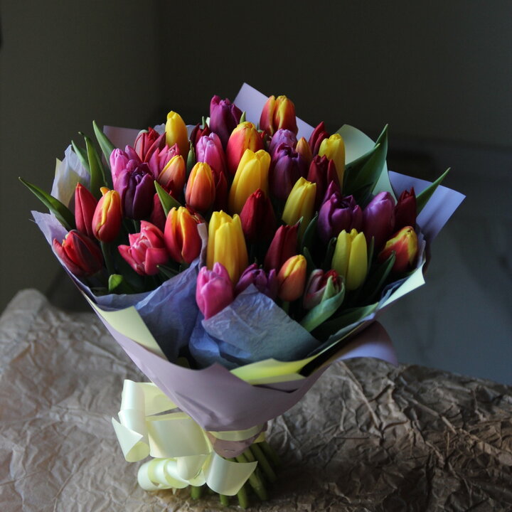 Букет из 45 разноцветных тюльпанов (Моно 45)