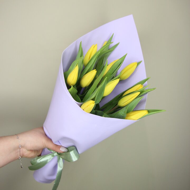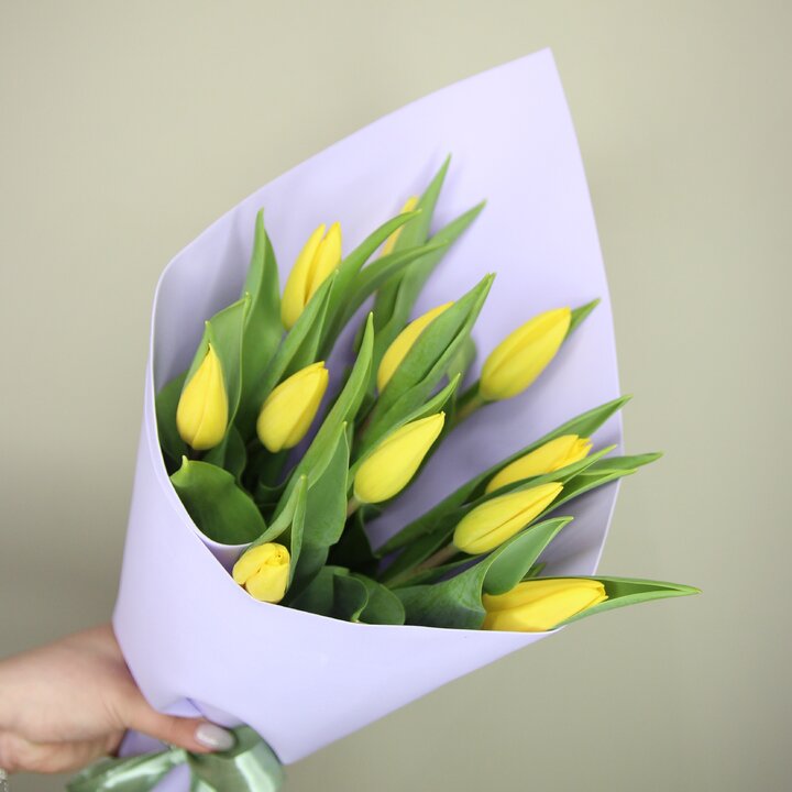 Букет из 11 желтых гладких тюльпанов (Моно 21)