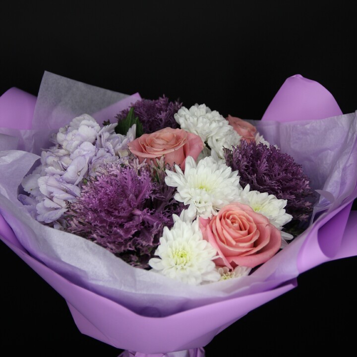 Состав букета: Брассика, Кустовая хризантема, Роза, Гортензия