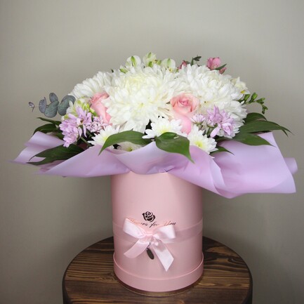 Композиция с хризантемой и розой (BOX 43)